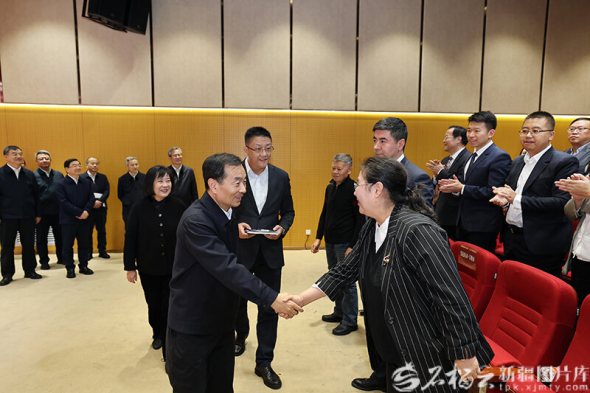 11月7日,自治区党委书记、兵团党委第一书记、第一政委陈小江在新疆日报社,看望慰问正在开展记者节活动的全区新闻工作者代表。石榴云/新疆日报记者崔志坚摄