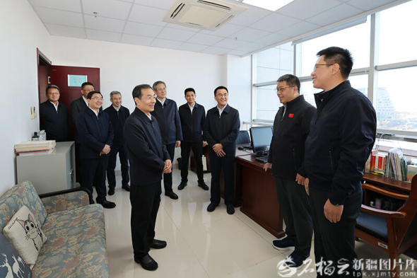11月7日,自治区党委书记、兵团党委第一书记、第一政委陈小江在中央广播电视总台新疆总站,看望慰问新闻工作者。石榴云/新疆日报记者崔志坚摄