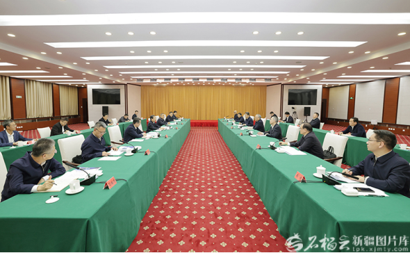 1月5日,自治区党委书记陈小江、自治区主席艾尔肯·吐尼亚孜在乌鲁木齐会见中国煤炭地质总局党委书记贾春曲一行。石榴云/新疆日报记者崔志坚摄