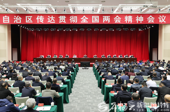 石榴云/新疆日报讯(记者王兴瑞报道)自治区传达贯彻全国两会精神会议3月14日召开。自治区党委书记陈小江主持会议并讲话,强调要深入学习贯彻全国两会精神特别是习近平总书记重要讲话精神,完整准确全面贯彻新发展理念和新时代党的治疆方略,牢牢扭住社会稳定和长治久安工作总目标,紧紧围绕铸牢中华民族共同体意识、推进中华民族共同体建设,锚定党中央赋予新疆的“五大战略定位”,扎实推动经济社会高质量发展,凝心聚力建设社会主义现代化新疆。