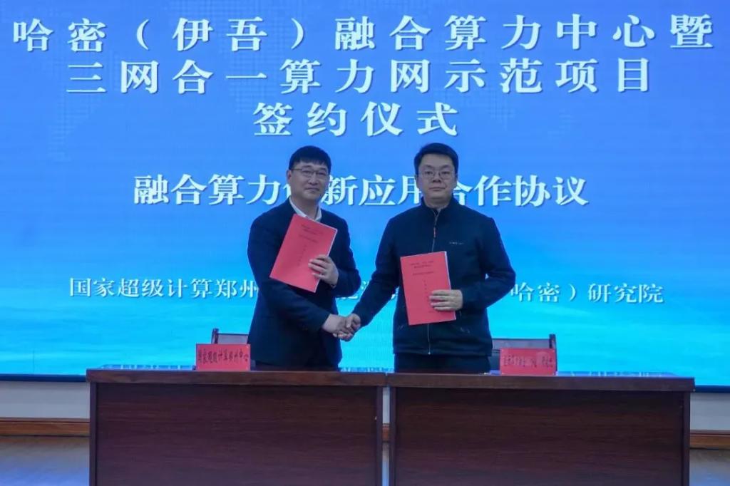 国家超级计算郑州中心与能源算力融合(哈密)研究院签订融合算力创新应用战略合作协议。伊吾县融媒体中心记者刘亚辉摄