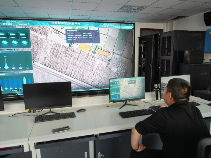 智慧农业指挥中心工作人员远程操控调度农业设备。
