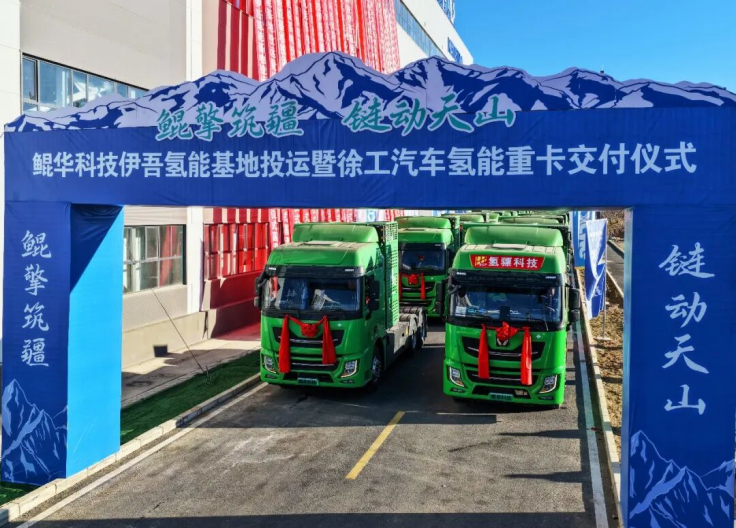 鲲华科技伊吾氢能基地投运暨200台氢能重卡交车仪式。