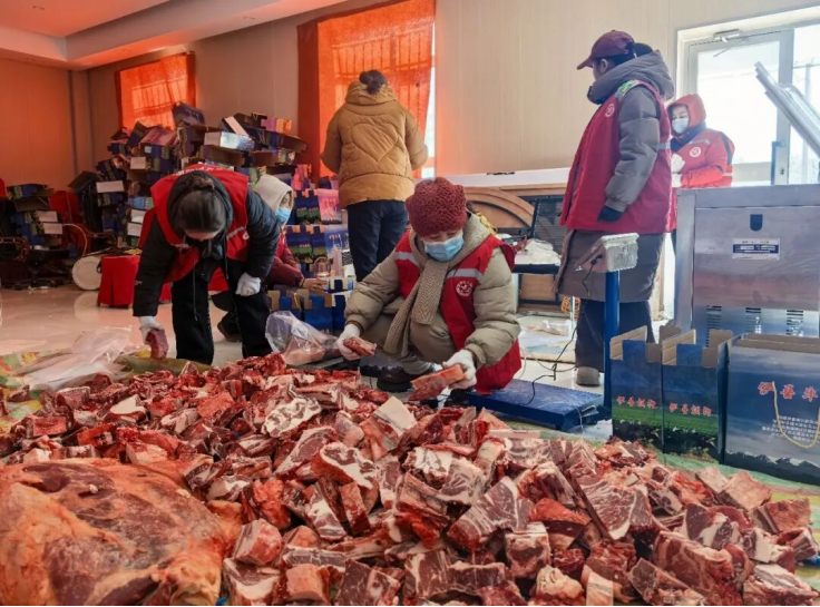 订单顺利落地执行的背后,离不开基层党组织的强有力引领。在牛肉切割、分装、包装的各个环节,伊吾县吐葫芦乡甘沟村充分发挥党支部战斗堡垒作用和农牧民党员先锋模范作用,村干部与驻村工作队全程跟进、协调把关,党员带头加班加点、严格把控产品质量,带动全体村民齐心协力完成订单任务,让党旗在乡村振兴一线高高飘扬。