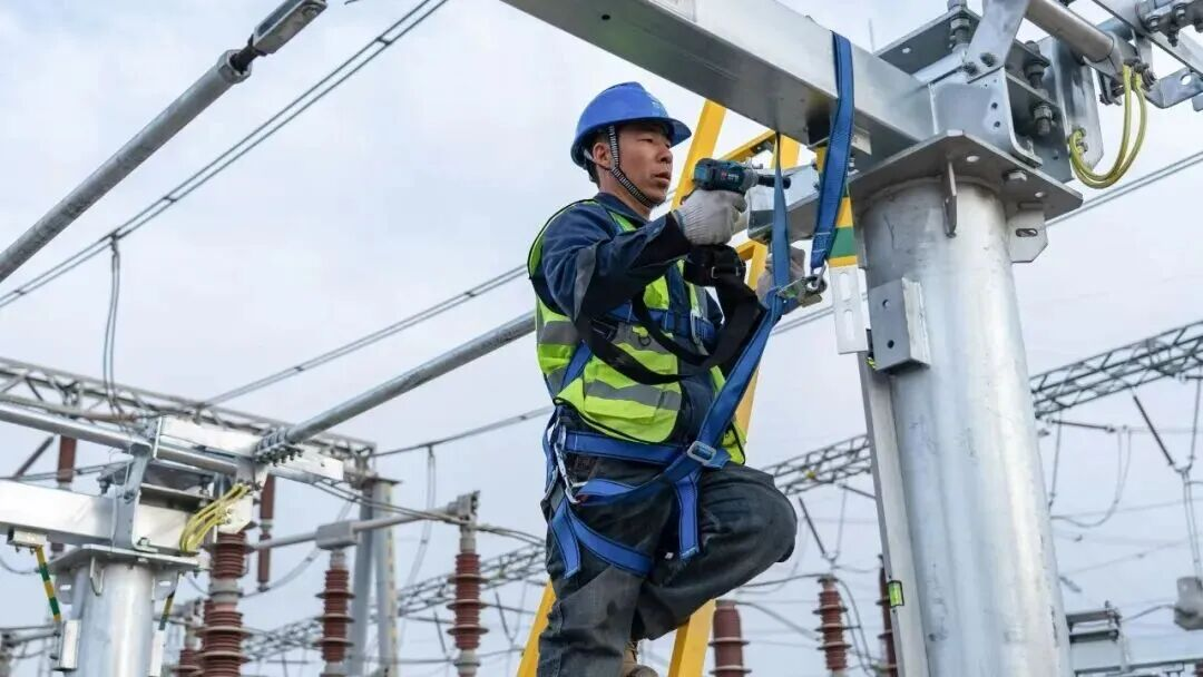 工人们正在进行变电站设备安装。通讯员冯洋供图